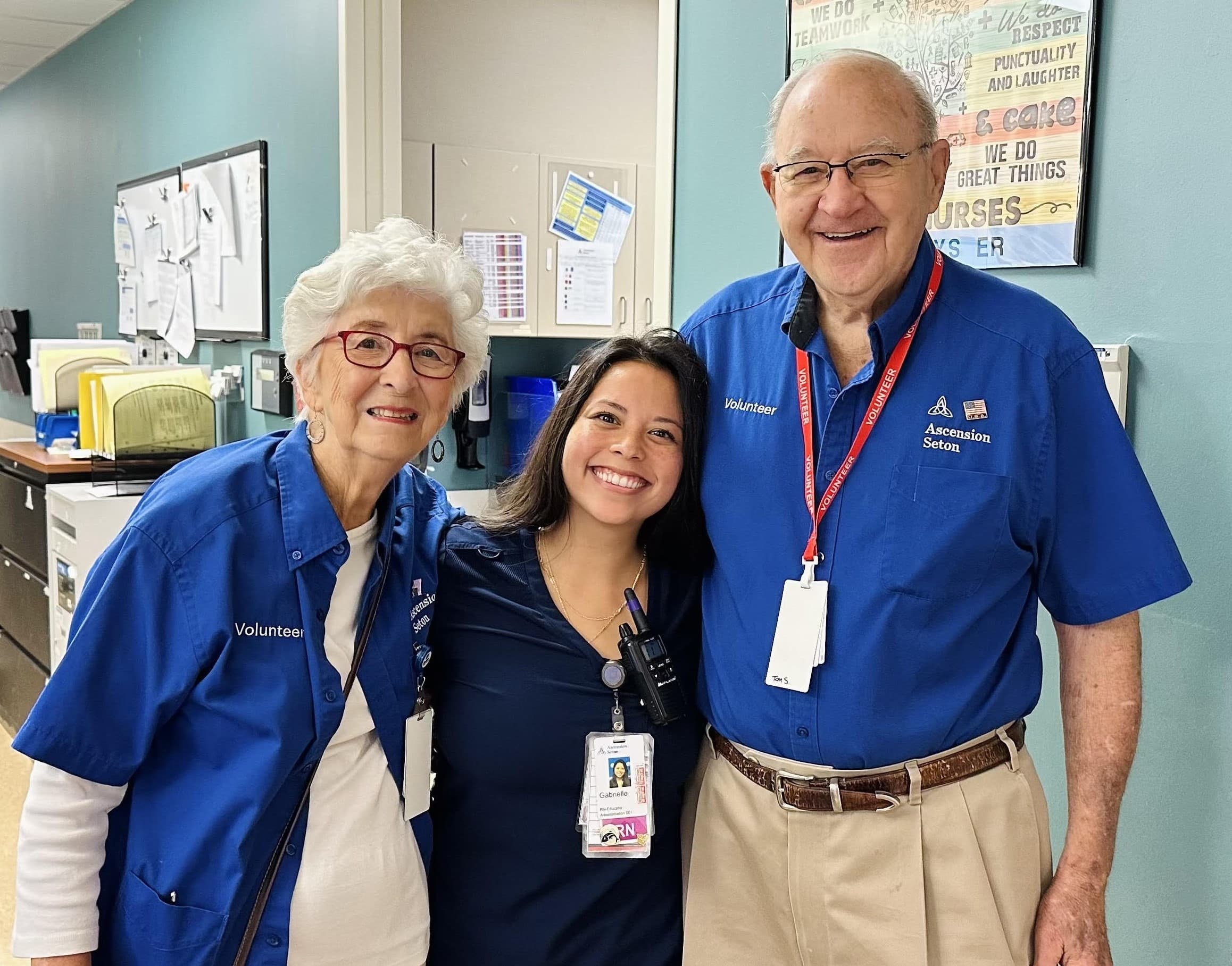 Joan Searcy was a force for good whose kindness and dedication touched countless lives. When Ascension Seton Hays opened its doors in 2009, Joan and her husband, Tom, were among the very first to volunteer. Over the years, Joan gave more than 2,300 hours of service, offering comfort, compassion, and a welcoming smile to patients, families, and staff.